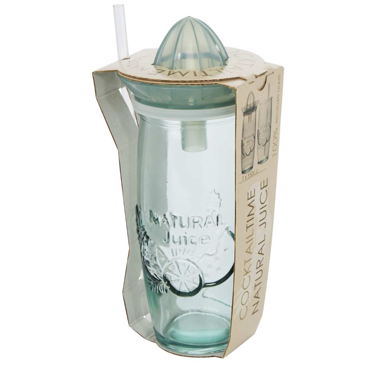 550 ml kierrätyslasista valmistettu cocktailmuki, johon sisältyy sitruspuristin ja pilli. Valmistettu yhdestä lasipullosta. Kierrätyslasi valmistetaan vähemmällä energialla, raaka-aineilla ja lisäaineilla kuin mitä perinteisen lasin valmistaminen edellyttää.