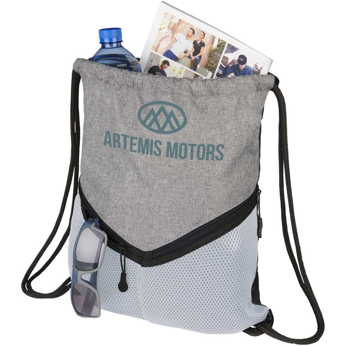 Voyager-vetoketjureppu ei ole tavallinen vetoketjureppu. Kestävä harmaa 600D-polyesteristä valmistettu päällinen ja kaksi vetoketjullista verkkotaskua pohjassa antavat repulle erittäin urheilullisen ilmeen. Voyager sopii erinomaisesti annettavaksi sisä- tai ulkotapahtumien yhteydessä, ja siinä on useita logopainatusvaihtoehtoja. Laukussa on kiristysnauha, joka sopii helposti kannettavaksi toisen tai molempien hartioiden yli.