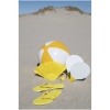 Kaksivärinen puhallettava rantapallo. Täytettynä rantapallo on halkaisijaltaan 40 cm ja tyhjennettynä 52 cm. Vaadittu varoitusteksti on painettu varoventtiilin ympärille. Suuren tulostusalueen valkoiset tai värilliset paneelit takaavat logon erinomaisen näkyvyyden. Noudattaa EN-71-, REACH- ja POP-määräyksiä.
